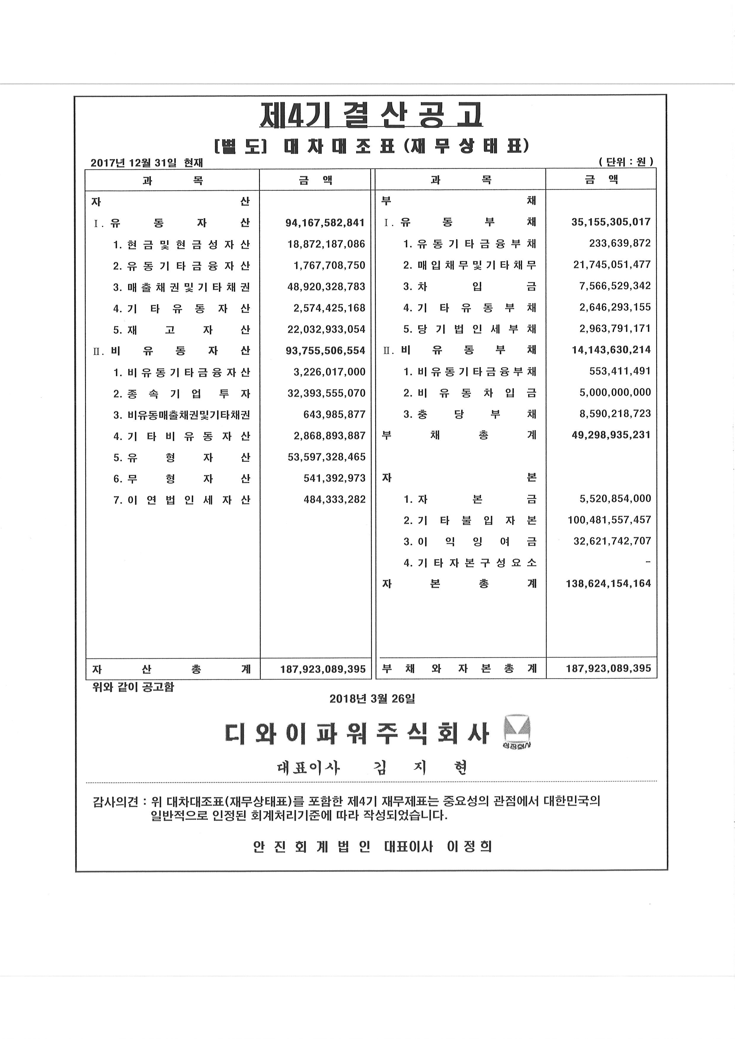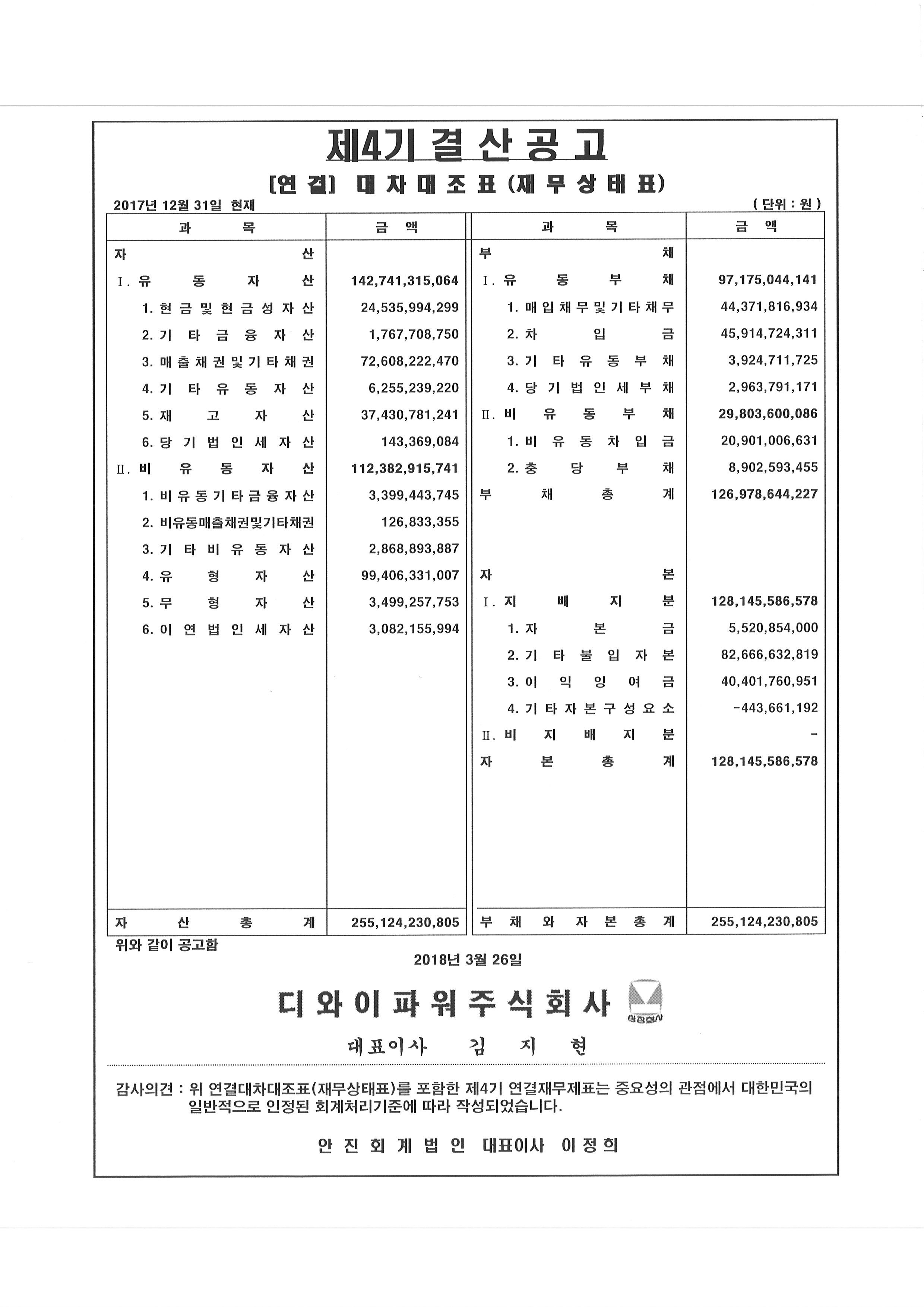 제4기 결산대차대조표 공고